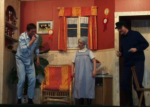 Wenn man Handwerkern nicht genau sagt was sie machen sollen,dann machen sie bestimmt eines: Vesperpause. Zimmermann Oskar Hobel, gespielt von Siegfried Hugl, und sein Lehrling Schorsch (Alexander Knauß) waren da ein eingespieltes Team. Sie kamen trickreich zu ihrer Tagesration, auch zu einem einhörnigen Stier, der dann doch keiner war. Ordnung in die heruntergekommene Wirtschaft konnte nur eine bringen: die dominierende Gestalt von Schwiegermutter Else. Vor Brigitte Fischer hatten sie alle Respekt. Selbst verliebt zog sie die Fäden zum Besseren. Bis sie sich nach Donner- wetter, Dorffest und Stierprämierung schließlich zur Verlobten ausrief.